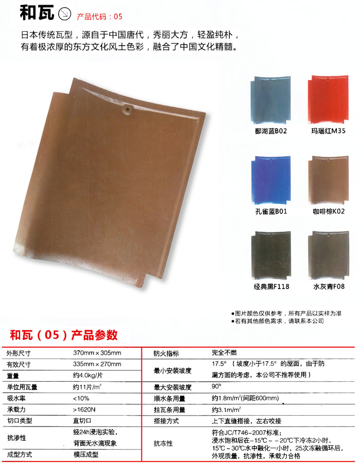 舊式磚瓦窯的復(fù)雜工程施工,不管從工程施工高效率還是從全面性上面沒法再融入當(dāng)代磚瓦窯的發(fā)展趨向。新型瓦材商品的不斷創(chuàng)新,促使工程施工高效率和竣工以后的全面性都很好。而水泥瓦應(yīng)當(dāng)說成如今瓦產(chǎn)品之中的引領(lǐng)者。將來的屋面裝飾建材將是新式屋面瓦水泥瓦的天地,伴隨著國家平改坡工程項(xiàng)目的日漸推動(dòng),ASA水泥瓦的優(yōu)勢也愈來愈突顯,水泥瓦推動(dòng)屋面裝飾建材為期不遠(yuǎn)。水泥瓦應(yīng)用高新科技有機(jī)化學(xué)化工技術(shù)研發(fā)而成的新式建筑原材料,具備重量較輕、抗壓強(qiáng)度大、防潮防水、防 腐阻燃性、隔音降噪隔熱保溫等多種多樣優(yōu)質(zhì)特點(diǎn),廣泛適用經(jīng)濟(jì)開發(fā)區(qū)平改坡、農(nóng)貿(mào)批發(fā)市場、大型商場、居民小區(qū)、新農(nóng)村規(guī)劃住戶別墅洋房、雨蓬、遮陽蓬、仿古式建筑等。強(qiáng)力的耐老化,水泥瓦采用高耐侯改性材料環(huán)氧樹脂(ASA)做為瓦的表層原材料。這類高耐老化環(huán)氧樹脂特別適合室外應(yīng)用。在地理環(huán)境中具備超乎尋常的使用性能,它即便長期性曝露于紫外光、體內(nèi)濕氣、熱、寒和沖擊性下,仍能維持色調(diào)和物理學(xué)性能的可靠性。